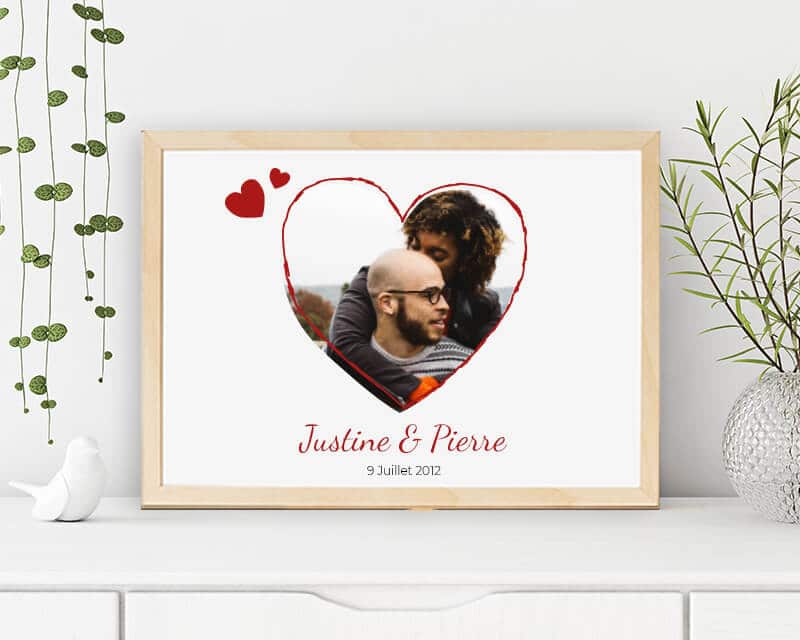 On a tous eu chez soi une photo de son couple sur son frigo ! On vous propose de faire les choses en beaucoup mieux avec cette affiche personnalisée. Une photo romantique, un souvenir de leur premier voyage ensemble, ou bien simplement un portrait, vous pourrez mettre la photo de votre choix sur cette affiche personnalisée !