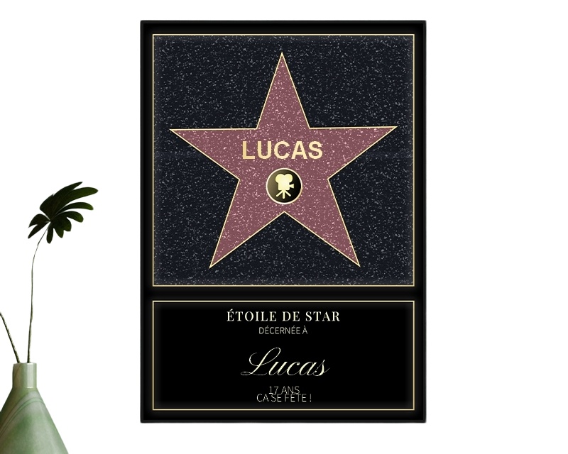 Pour célébrer les 17 ans d'un jeune homme spécial, quoi de mieux qu'une affiche étoile de star personnalisée ? Cette affiche unique et originale est un cadeau parfait pour marquer cette étape importante de sa vie. Imaginez son visage s'illuminer en découvrant son nom inscrit sur une étoile brillante, comme celles du Hollywood Walk of Fame !