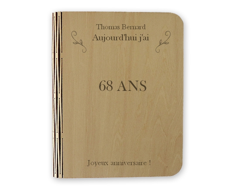 - Livre lumineux avec sa couverture en bois personnalisable : Un design authentique et unique.