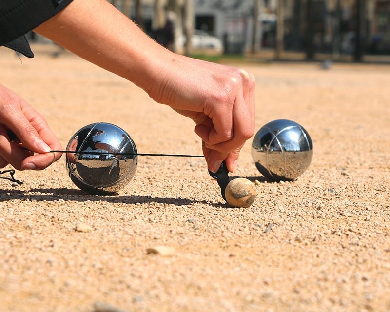- - Set de boules proposé en option avec un cochonnet en bois et une corde de mesure : tout est pensé pour une partie réussie.