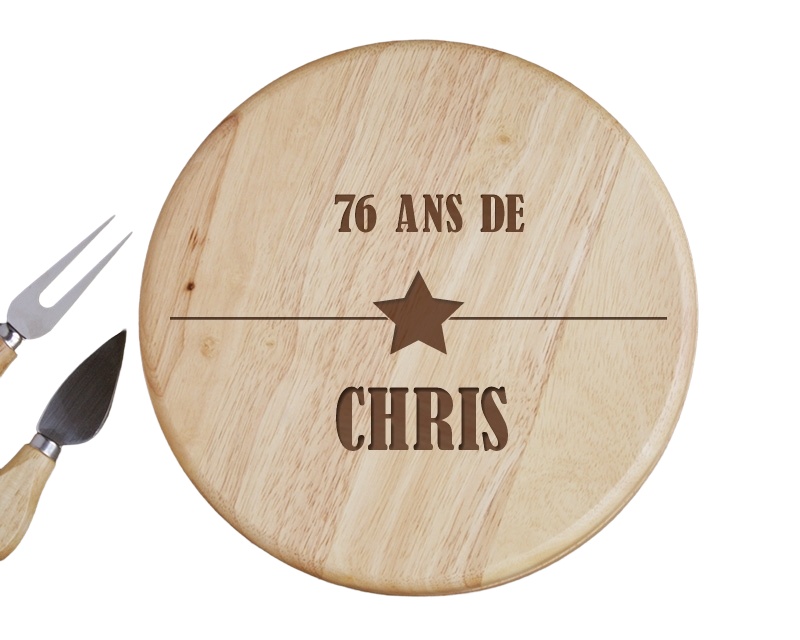 Bienvenue dans l'univers du plateau fromage personnalisé pour homme, un cadeau original et plein de caractère pour célébrer les 76 ans d'un amateur de bons fromages. Imaginez offrir à Monsieur [Prénom] un plateau de fromage insolite en bois personnalisé, qui deviendra son compagnon idéal lors de ses dégustations gourmandes.