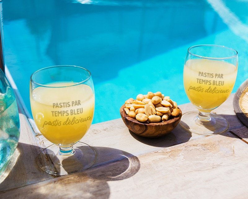- Verre à pastis personnalisé et robuste qui sent bon le soleil, les copains et la pétanque : Ce verre incarne l'esprit convivial du sud de la France, parfait pour partager un moment authentique.