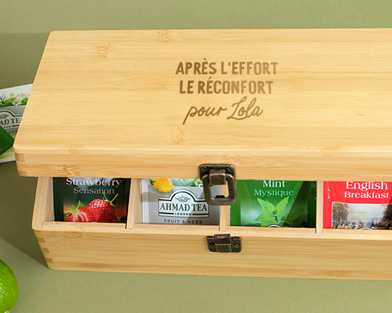 Offrez à votre proche né en 1979 une boîte à thé en bois personnalisée, un cadeau unique et plein de charme pour célébrer son anniversaire ou toute occasion spéciale. Cette boîte à thé en bois est un véritable trésor pour les amateurs de thé qui aiment savourer une bonne tasse de thé parfumé.