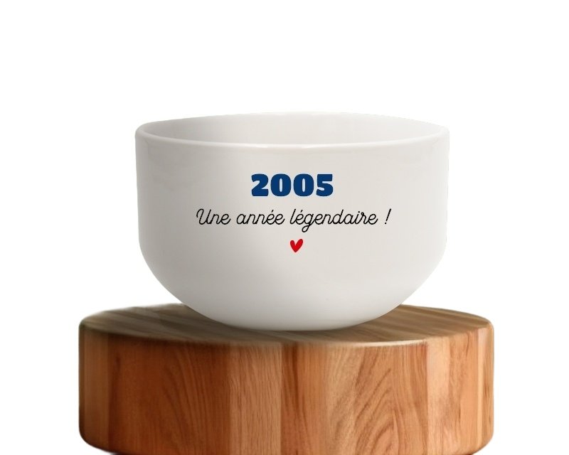 Offrez ce bol personnalisé à un proche né en 2005 pour son anniversaire, Noël ou toute autre occasion spéciale. Imaginez sa surprise et son bonheur en découvrant un bol unique, conçu spécialement pour lui/elle, avec l'année de sa naissance fièrement affichée.
