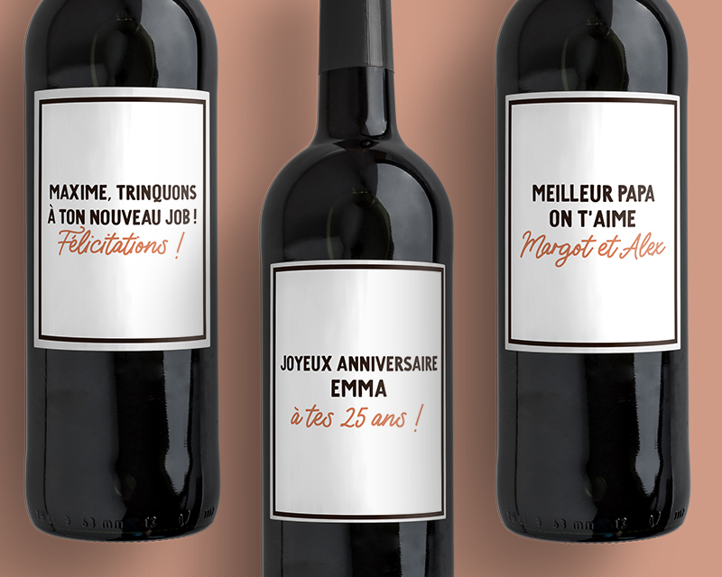 - Personnalisation de l'étiquette : Ajoutez une touche personnelle en personnalisant l'étiquette de la bouteille avec le nom et un message spécial pour rendre ce cadeau encore plus unique.