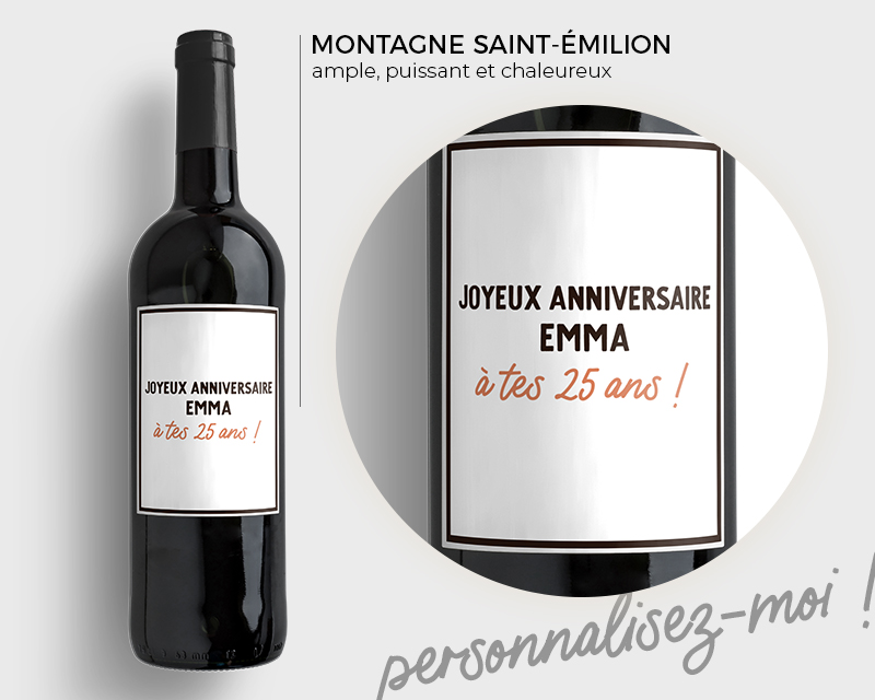 - Cadeau parfait pour un amateur de grands crus : Offrir une bouteille de vin personnalisée permet de faire plaisir à un amateur de vins raffinés, avec le choix entre un Bordeaux AOC, un Saint-Émilion ou un Médoc.