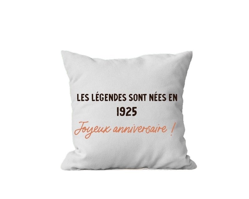 Pour célébrer une personne née en 1925, rien de tel qu'un coussin personnalisé pour lui transmettre un message affectueux et unique. Imaginez la joie sur le visage de votre être cher en découvrant un coussin où chaque mot a été choisi spécialement pour lui, rappelant des souvenirs et des moments précieux de son passé.