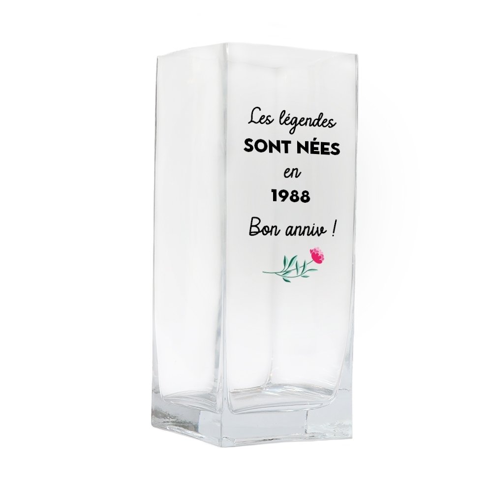 Bienvenue dans l'univers chaleureux du vase cubique personnalisé, un cadeau unique et tendance, parfait pour célébrer une personne née en 1988. Ce vase moderne en tendance offre une touche d'originalité à tout intérieur, tout en permettant d'ajouter un message personnalisé, spécialement conçu pour marquer l'année de naissance de son destinataire.