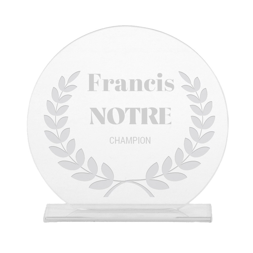 - Trophée rond de 14 cm en verre de haute qualité : D'une élégance rare, ce trophée reflète la lumière avec élégance, mettant en valeur le prénom de [Francis].