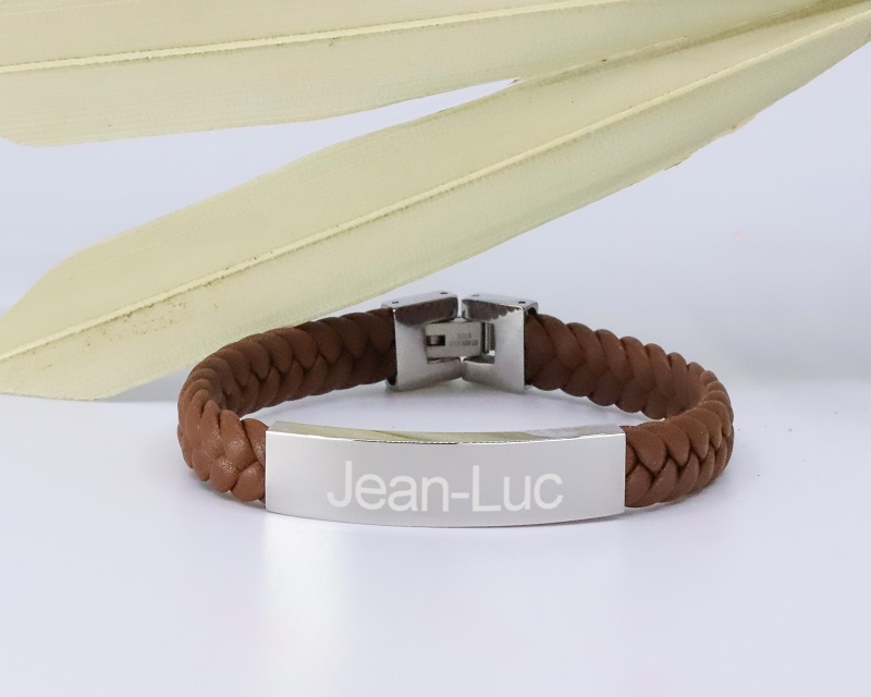 Bracelet gravé Homme en Acier et Cuir Tressé