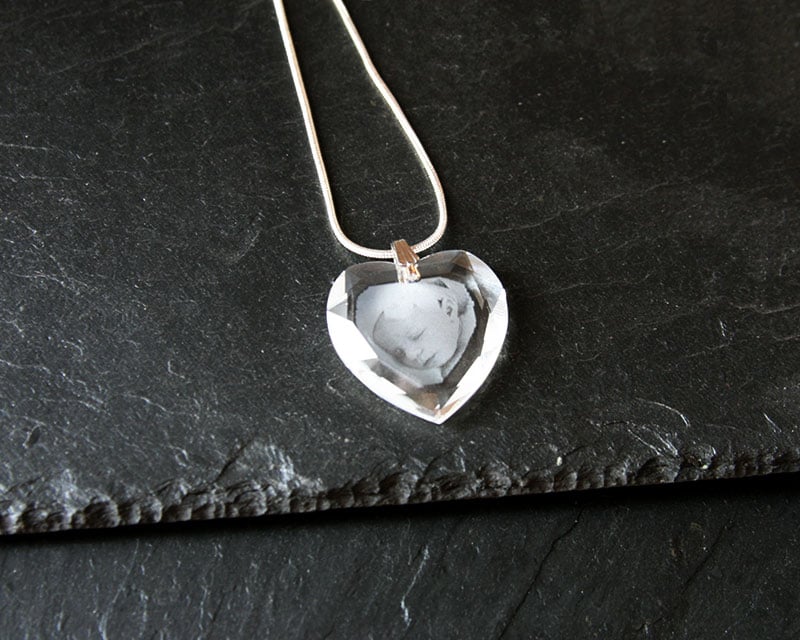 Faites graver dans ce pendentif cœur en cristal Swarovski® la photo d’une personne qui vous est chère, grâce à notre procédé de gravure laser dernière génération.