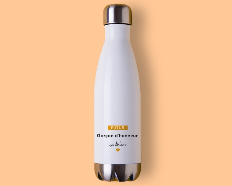 • Gourde personnalisée en France avec le message de votre choix : Une personnalisation de haute qualité qui permettra à votre [Futur garçon d'honneur] de se démarquer et d'afficher fièrement son nouveau statut.
