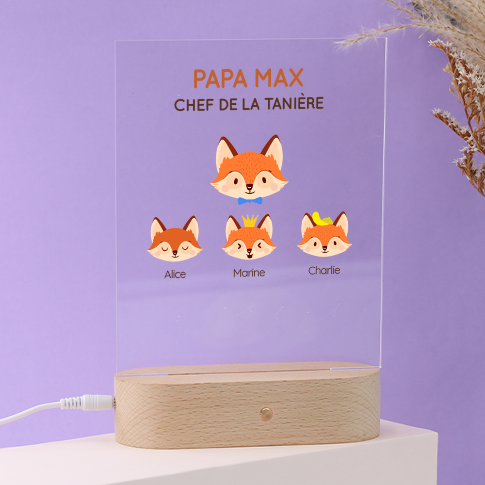 Lampe 3D personnalisée - Papa Renard et sa meute