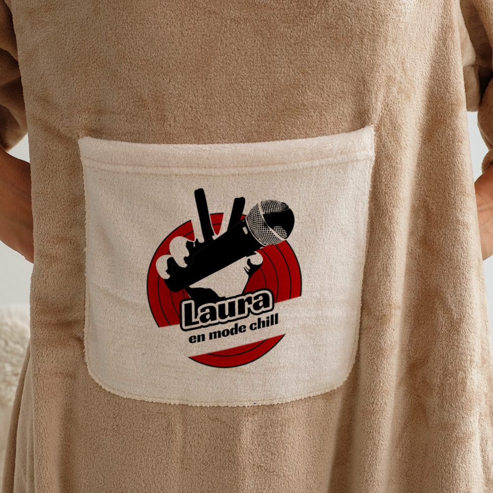 Avec son style rappelant les célèbres compétitions musicales, cette couverture à manches personnalisée est parfaite pour ceux qui aiment se démarquer, que ce soit sur scène ou sur leur canapé. Ajoutez un prénom ou un message pour une touche unique et amusante.