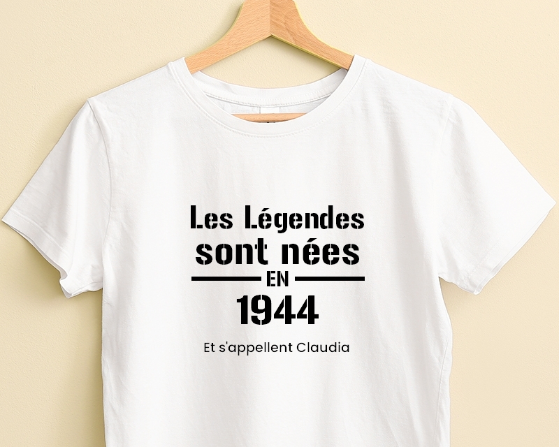 Tee shirt personnalisé femme - Les Légendes sont nées en 1944