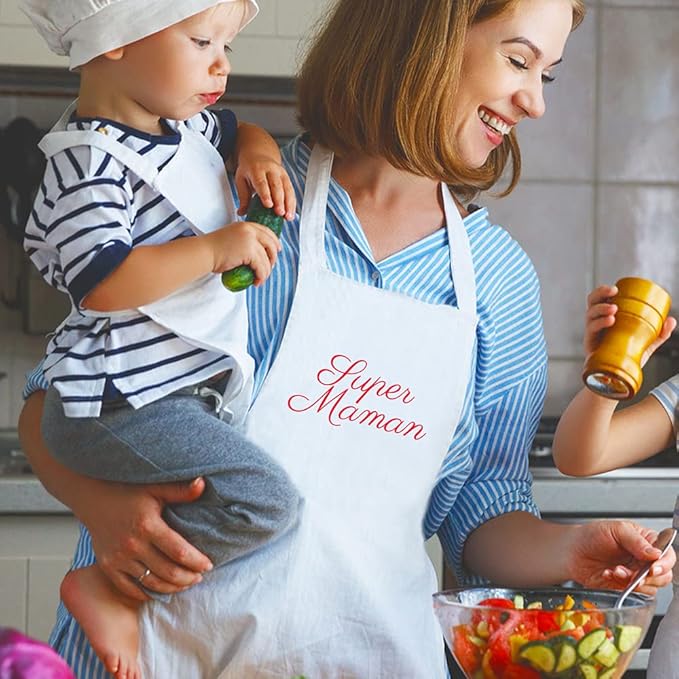 Parce qu’elle fait tout avec amour, ce tablier “Super Maman” est le cadeau parfait pour une maman qui aime cuisiner, pâtisser ou simplement ajouter sa touche magique à chaque plat.